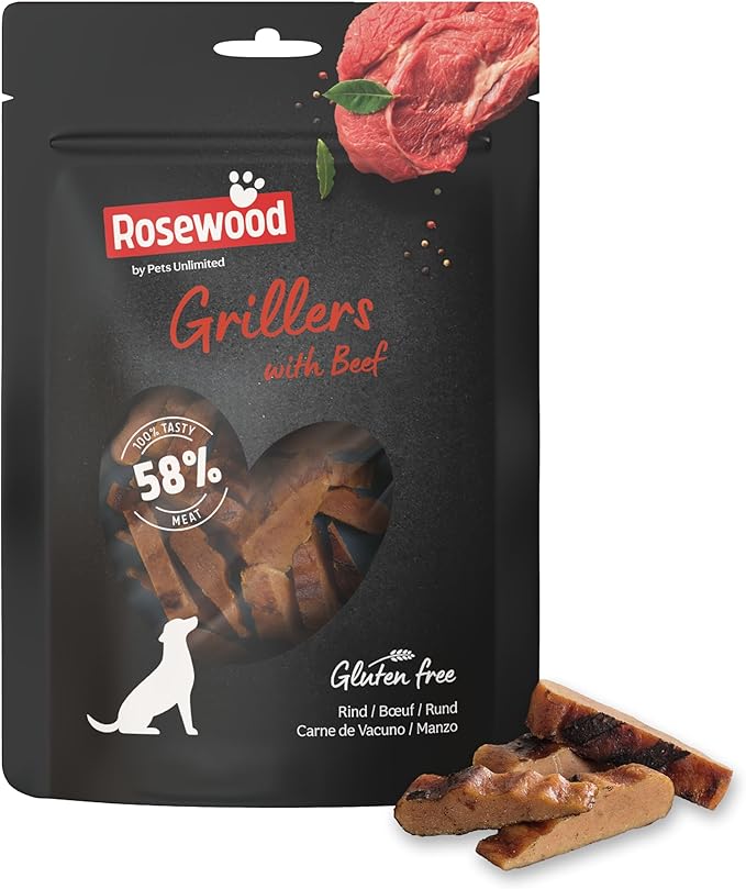 Premeeri oma koera maitsva ja tervisliku maiusega! Rosewood Grillers Beef on valmistatud kvaliteetsest veiselihast, pakkudes koerale nauditavat maitset ja lõbusat närimiselamust. Ideaalne vahepalaks, treeningpreemiaks või lihtsalt hellituseks sinu karvasele sõbrale.